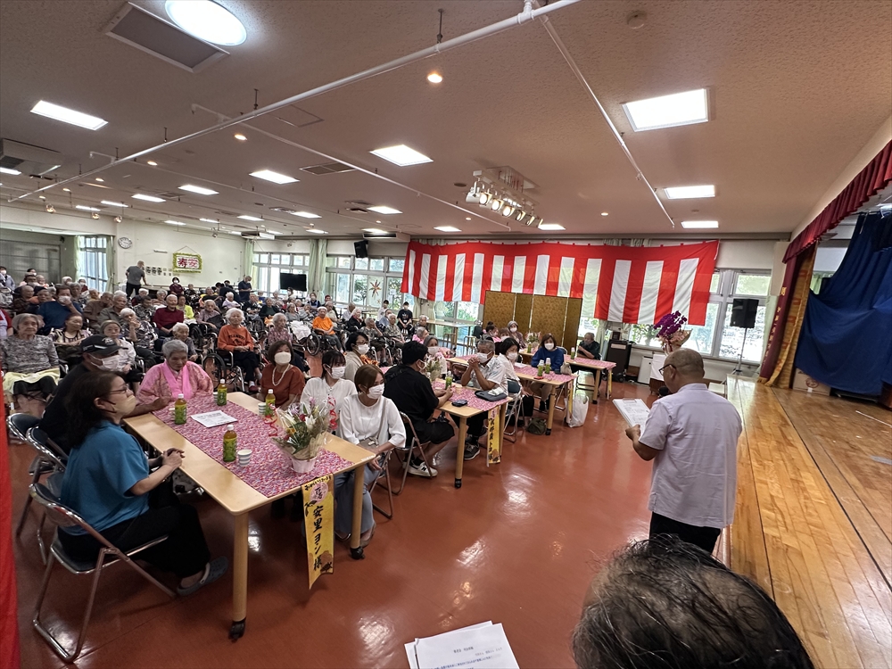 9/15(月)沖縄一条園 新百歳と敬老会の合同祝いを開催しました。